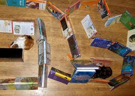 Z knížek si můžete vyrobit bludiště a na konec bludiště dát chutnou a štavnatou odměnu.